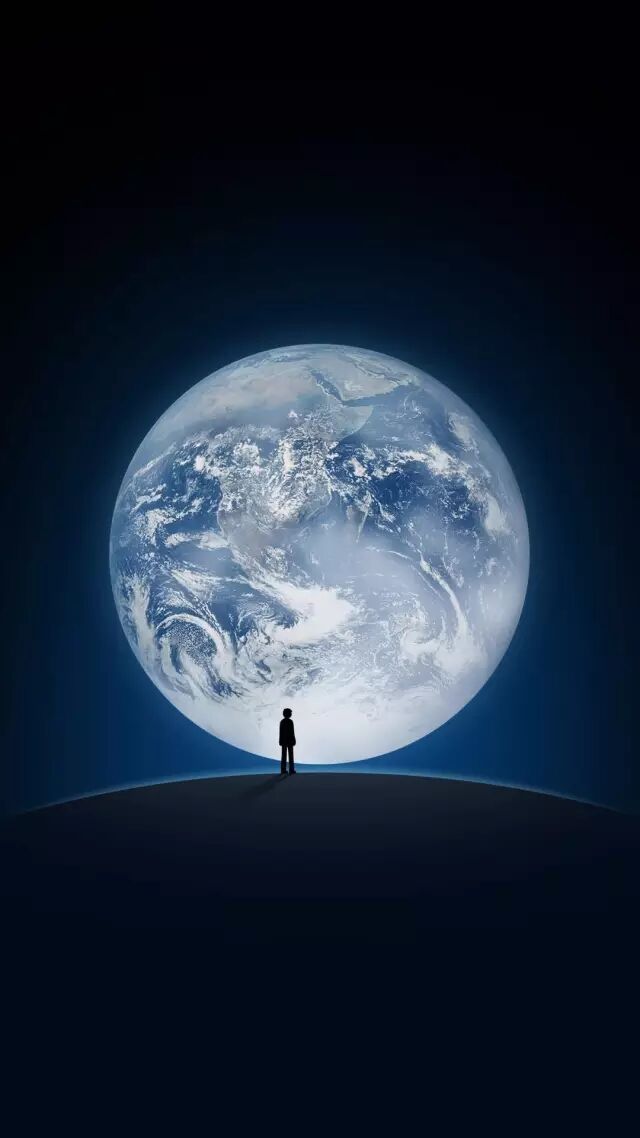 地球卫星图 + 小人人影