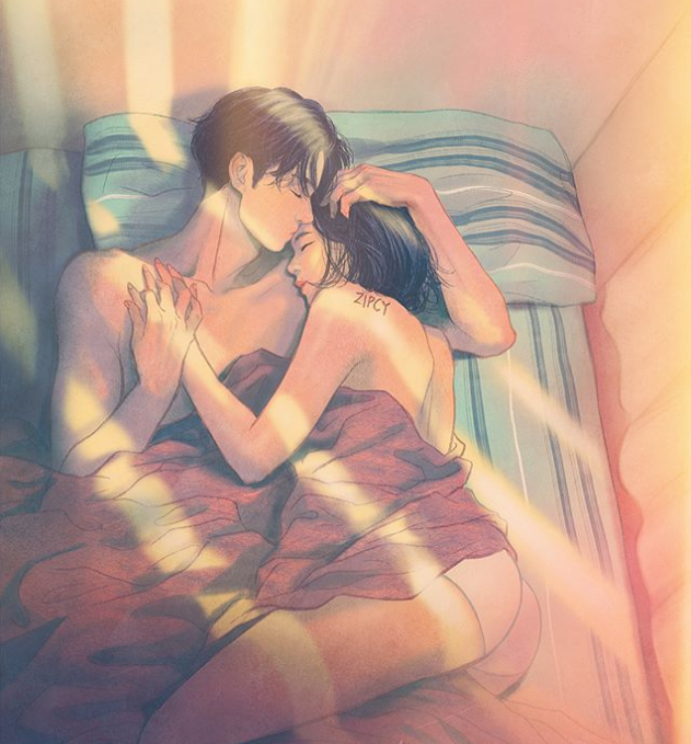 Zipcy的作品,细腻的笔触,或许略微带了点儿“挑逗”,但更吸引人的是画中流淌的脉脉情深~